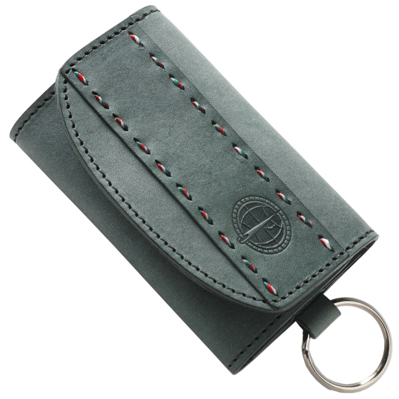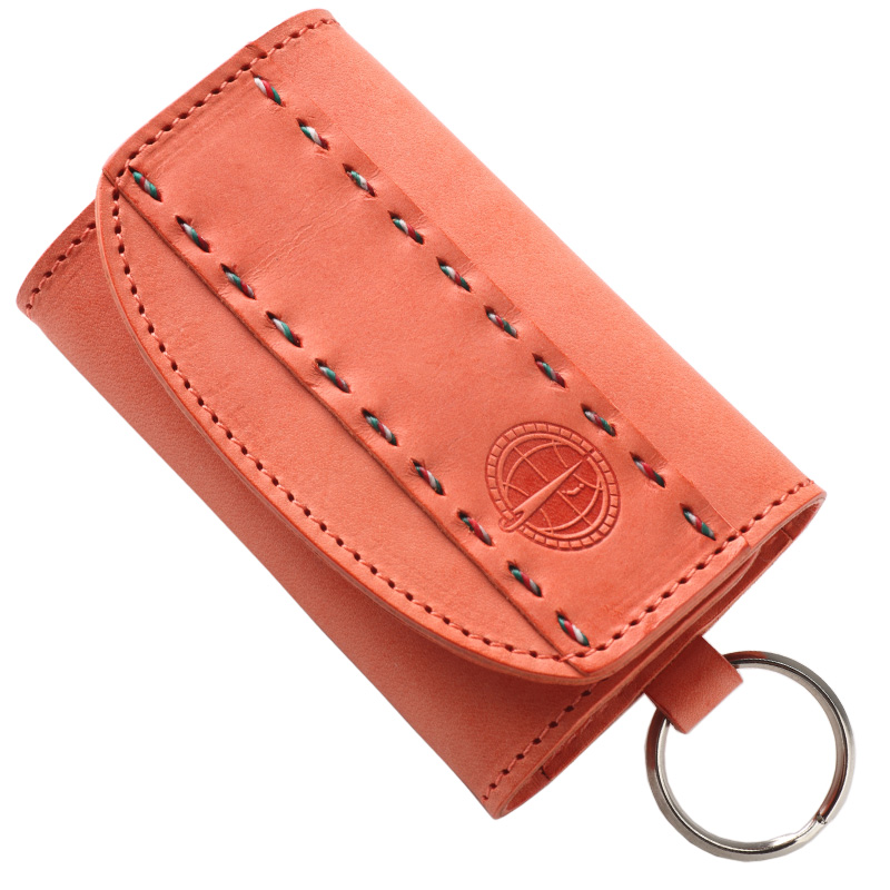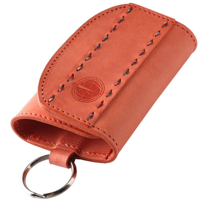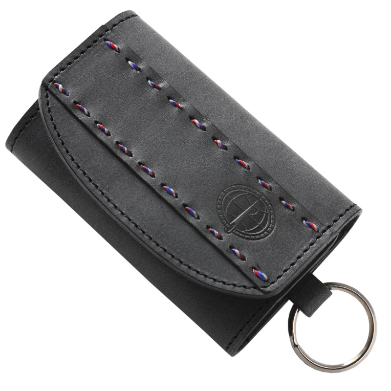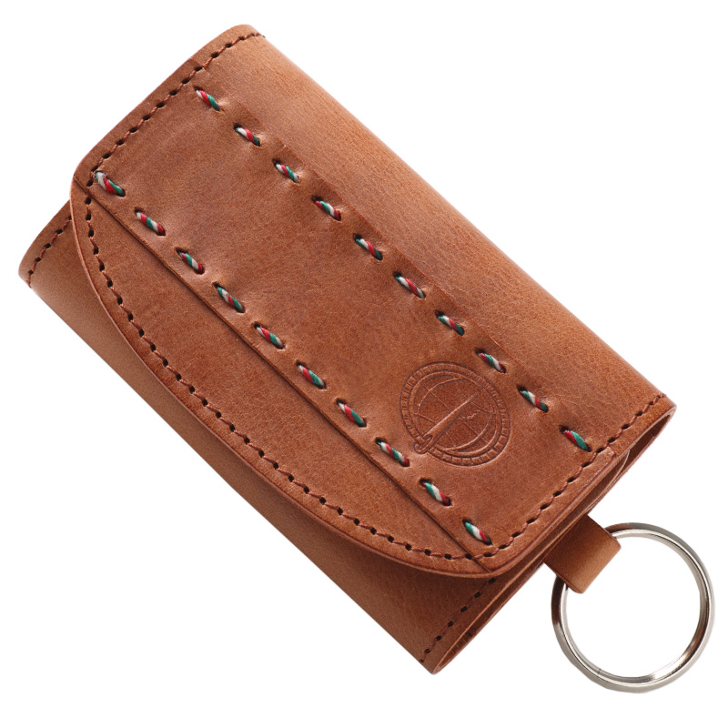 ロゴデザインの型押し、国旗をモチーフにしたステッチが共にキーケースのアクセントとなっています。