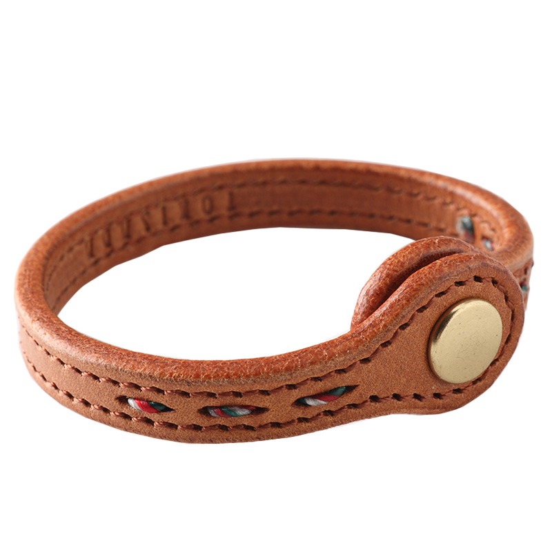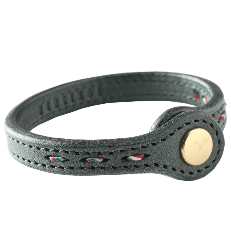 スナップ式にて簡単に着脱ができるレザーブレスレットです。