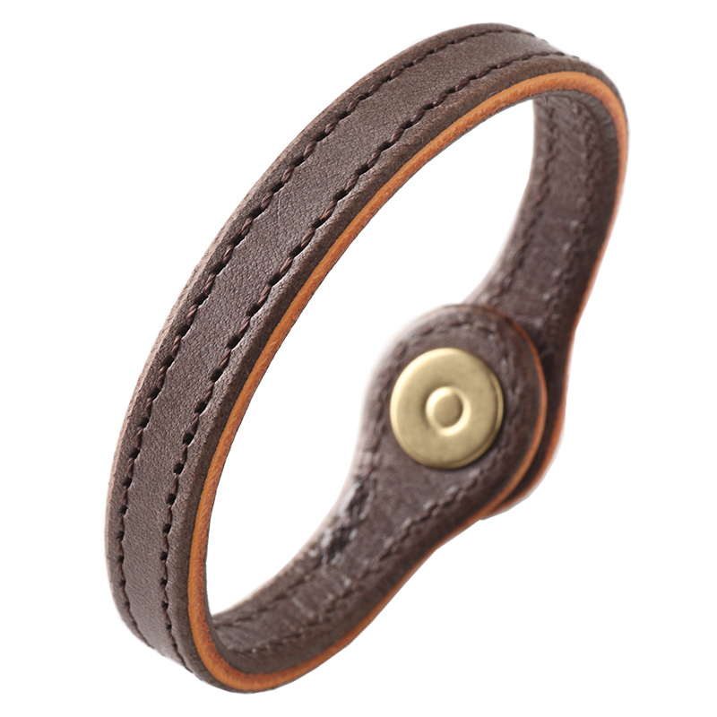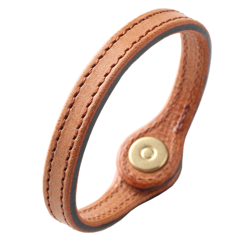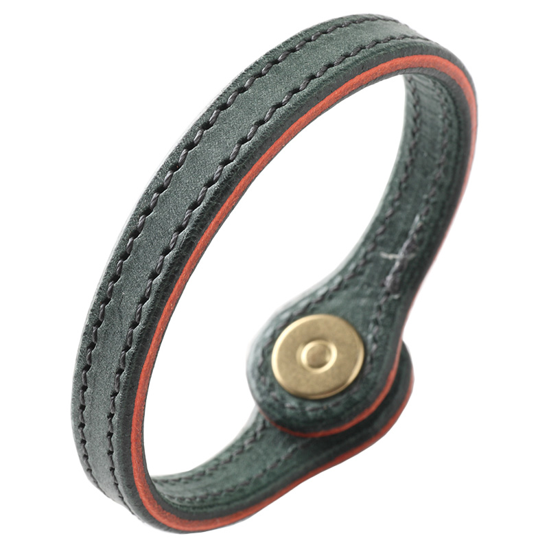 スナップ式にて簡単に着脱ができるレザーブレスレットです。