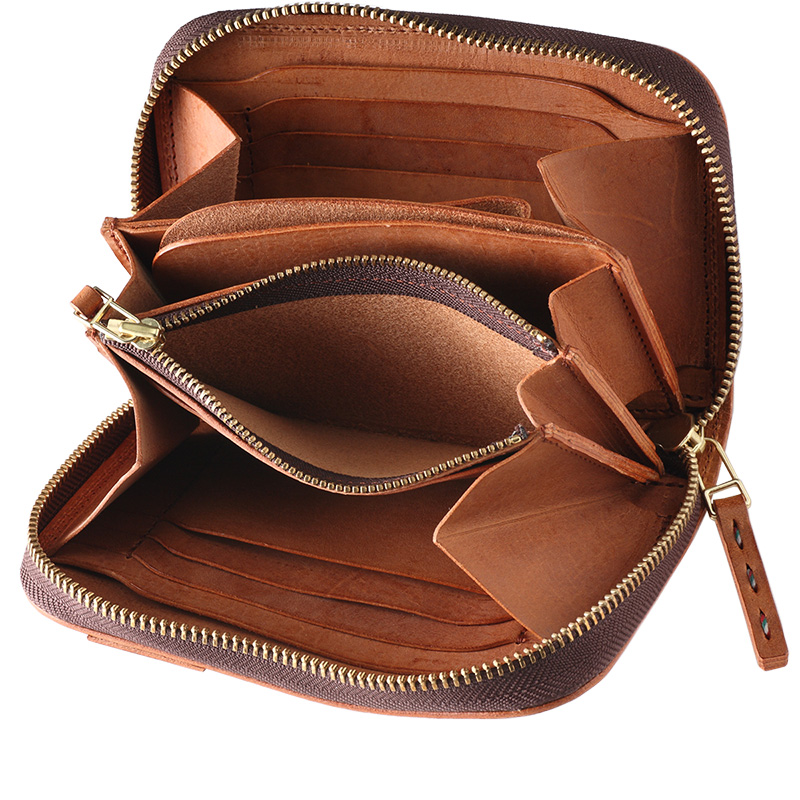 収納力に優れたミドルサイズラウンドファスナーウォレット。