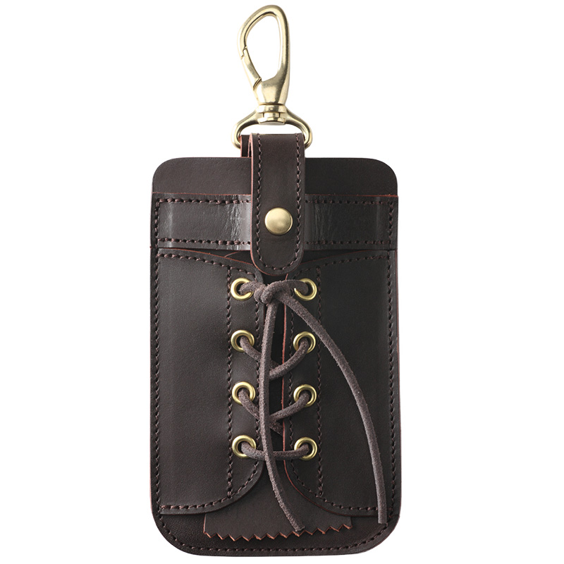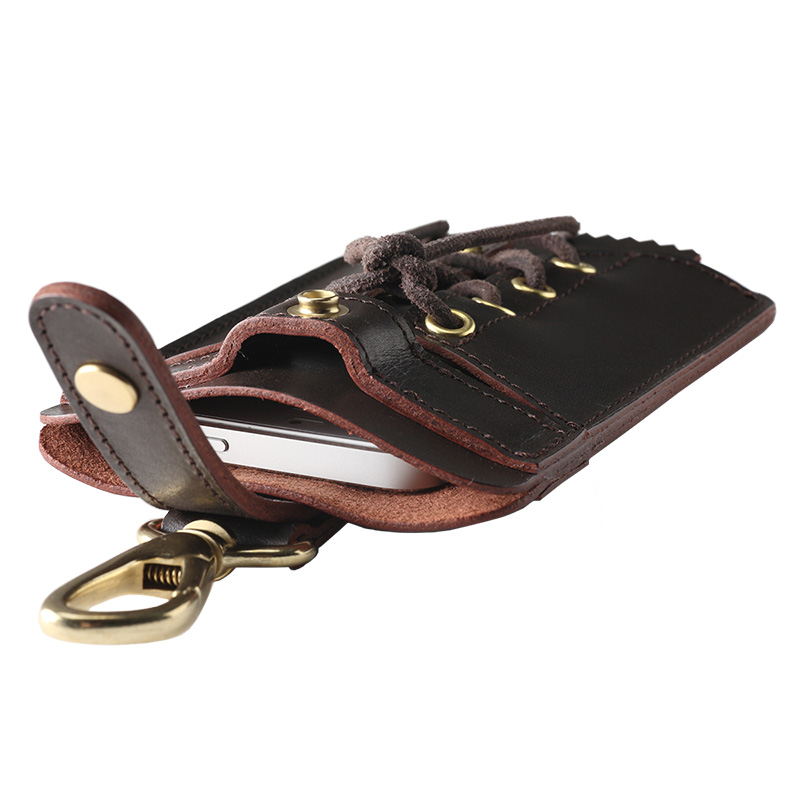 レザーストラップにはスナップボタンを使用しており、スマートフォンの落下を防ぐ事ができます。またスナップ式の為、開閉がしやすいので出し入れも手間がかかりません。