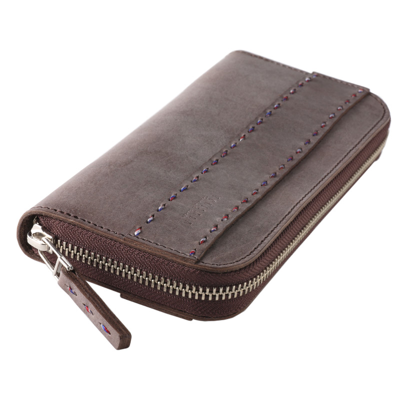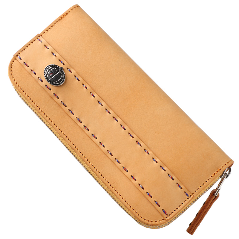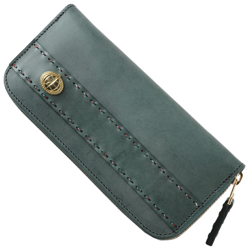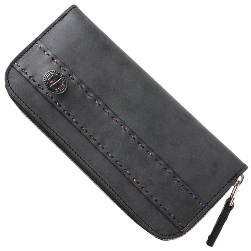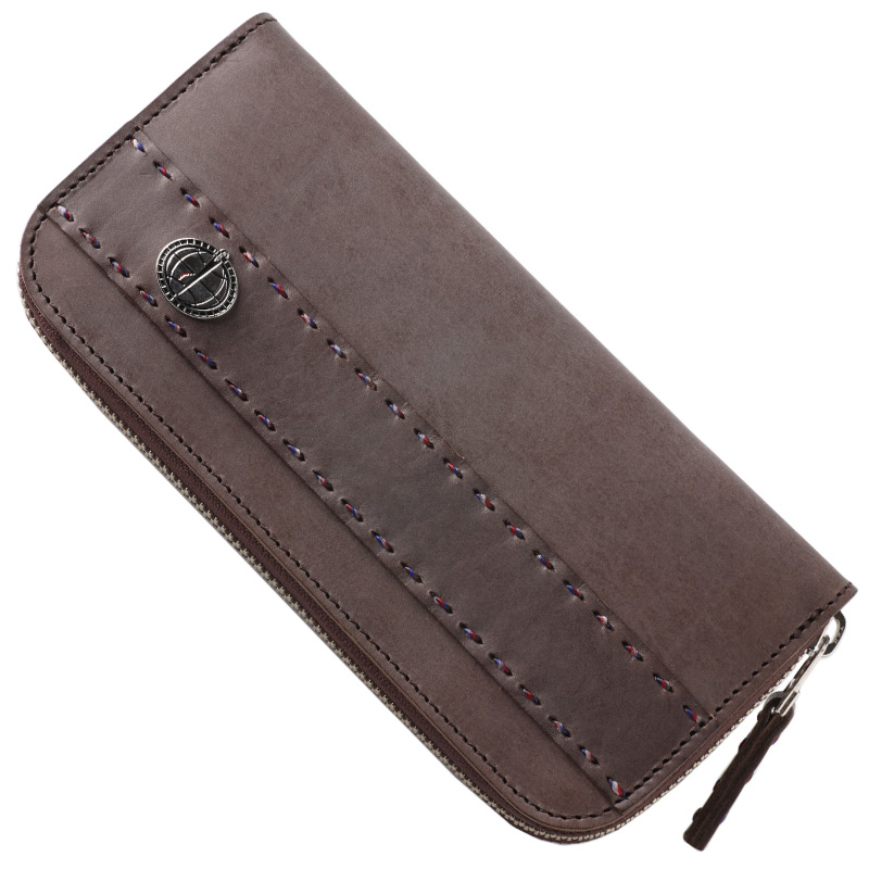 国旗をモチーフにしたステッチとブローチが、共にロングウォレットのアクセントとなっています。