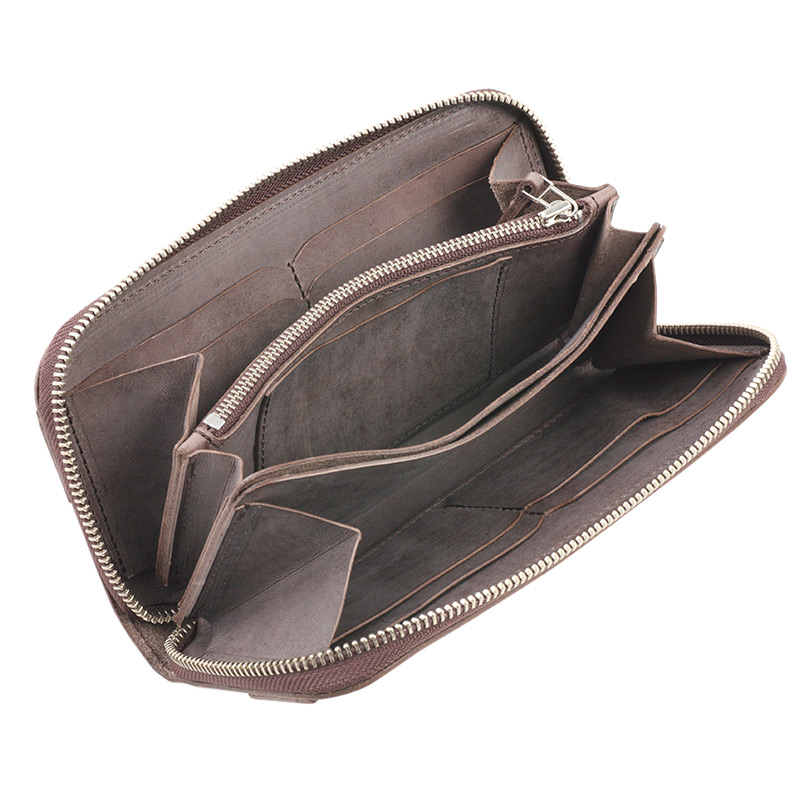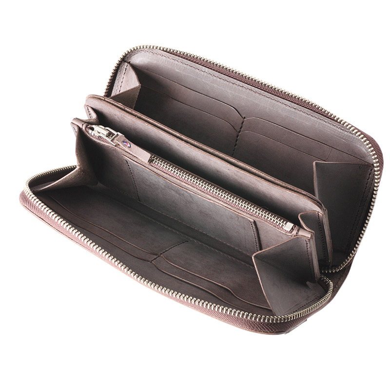 10カ所のカード入れが施された、収納力抜群のラウンドファスナーウォレット。