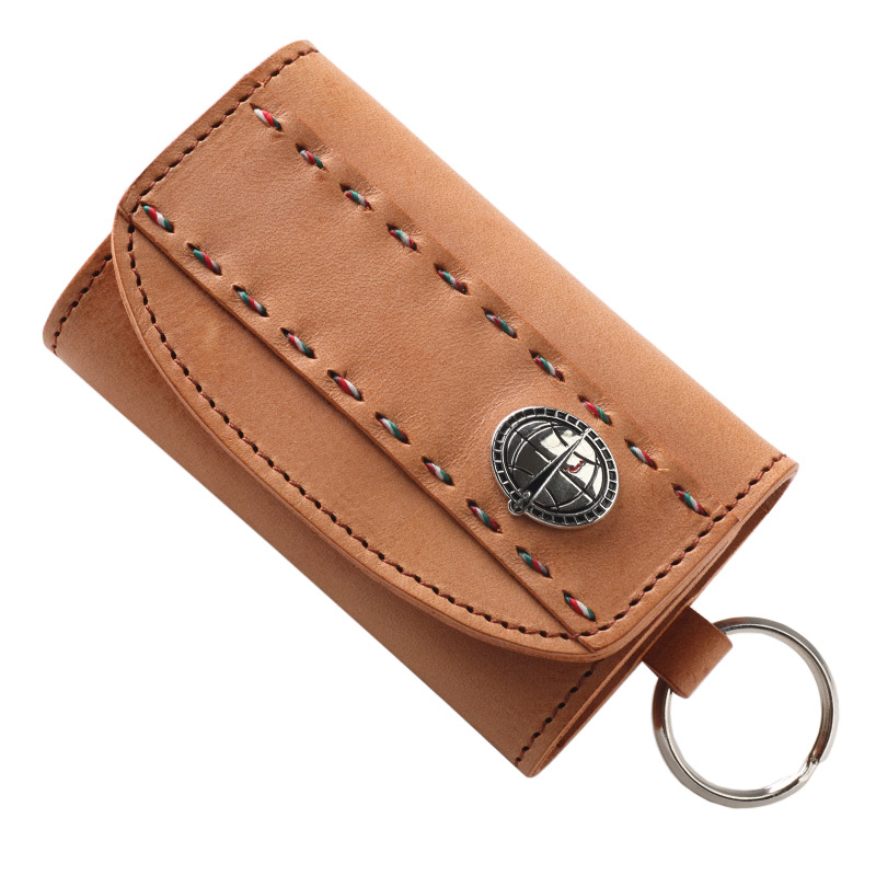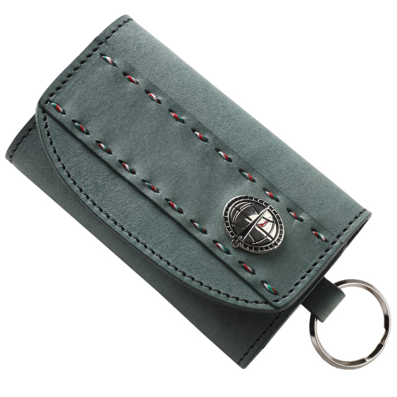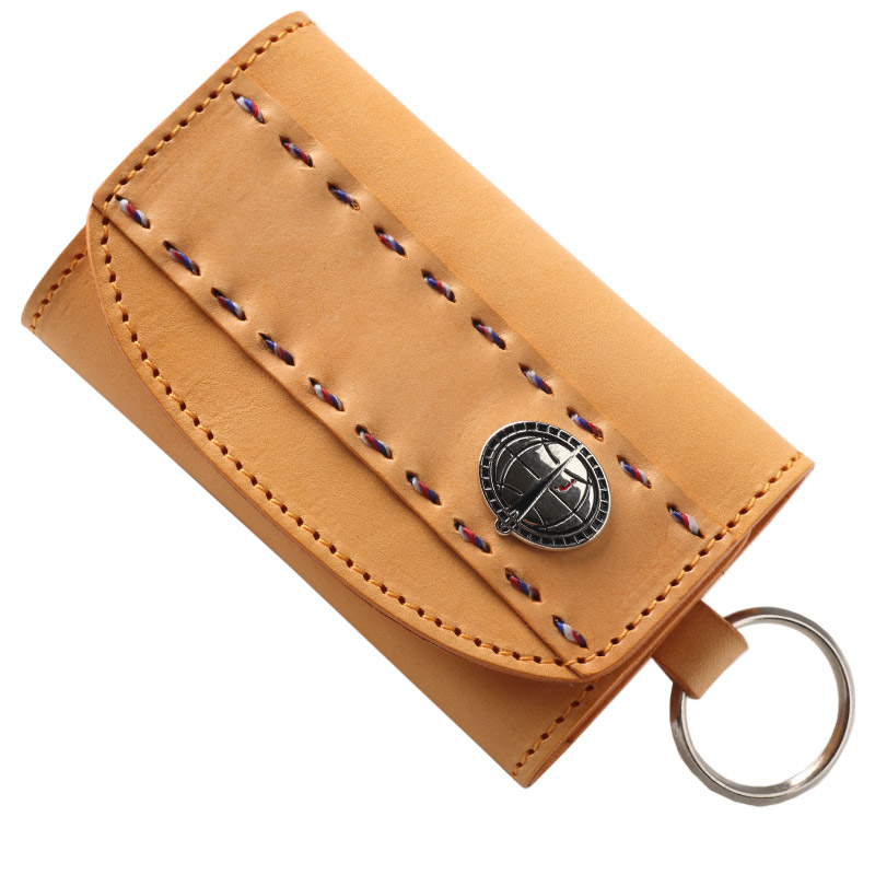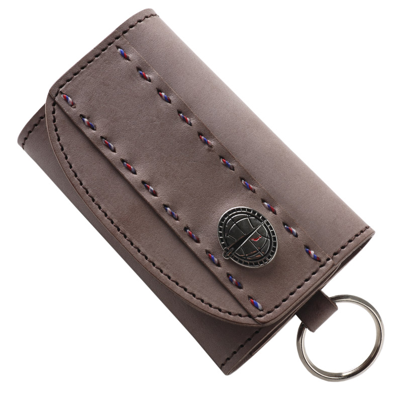 国旗をモチーフにしたステッチと、ブローチが共にキーケースのアクセントとなっています。